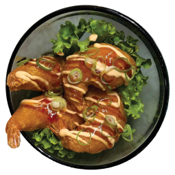 Maki inversé enrobé de poulet, chèvre, miel et oignon frit - 6...
